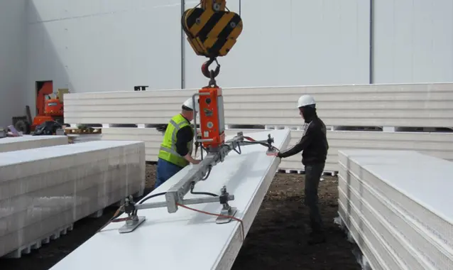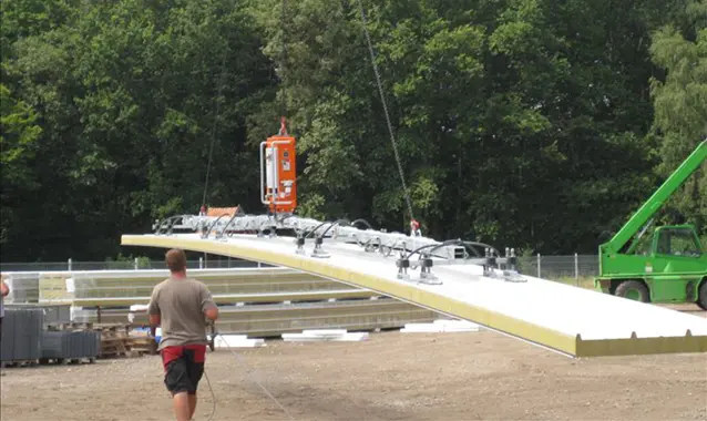Firma ta potrzebowała podnośnik próżniowy, dzięki któremu długie płyty dachowe o maksymalnej długości 24 metrów mogłyby zostać zamontowane za jednym razem. Podnośnik próżniowy musiał umożliwiać szybką oraz łatwą regulację w zależności od długości płyty. Dodatkowym wymogiem było to, iż powinna być możliwość montażu płyt o prostym oraz zakrzywionym kształcie.