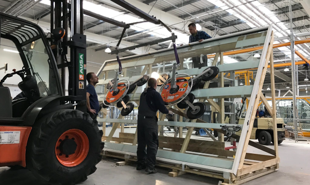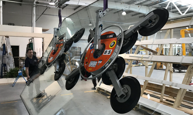 Przy montażu dużych tafli wymagana jest precyzja, dlatego też do transportu szyb wykorzystano dwa urządzenia GBX. Zastosowanie podnośników próżniowych VIAVAC przyczyniło się do tego, że montaż odbył się w bezpieczny i efektywny sposób.