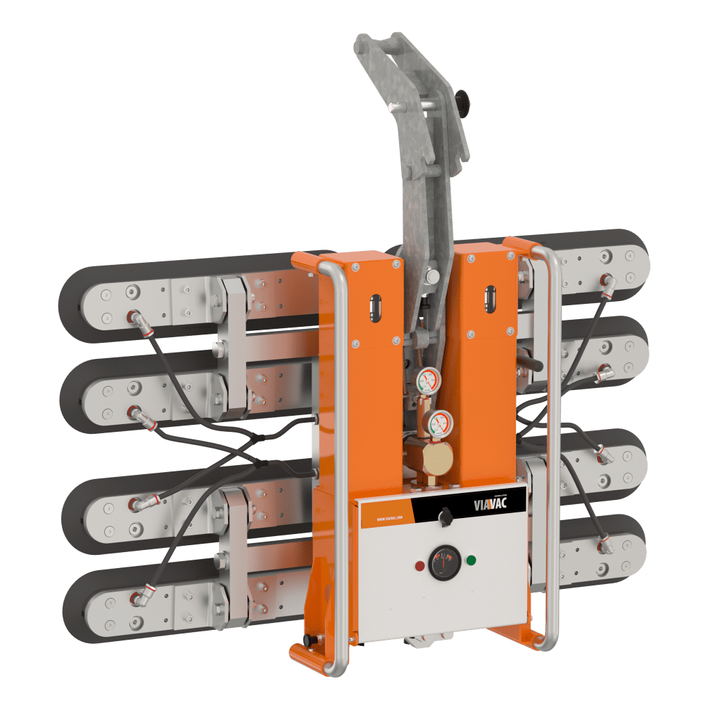 VIAVAC compact Curved nadaje się do montażu płaskich i zakrzywionych paneli szklanych o masie do 300 kg. Urządzenie można dostosowac do różnych promieni (maks. 800 mm). Szkło można podnosić zarówno po stronie wypukłej, jak i wklęsłej. Urządzenie ma regulowane ramiona, które zapewniają, że przyssawki dobrze przylegają do szyby.