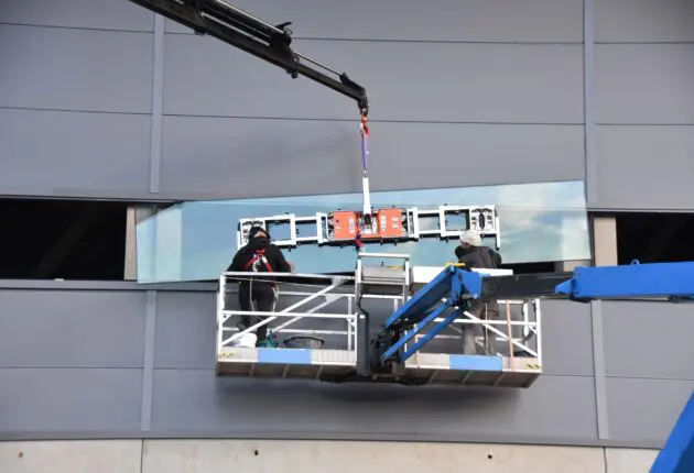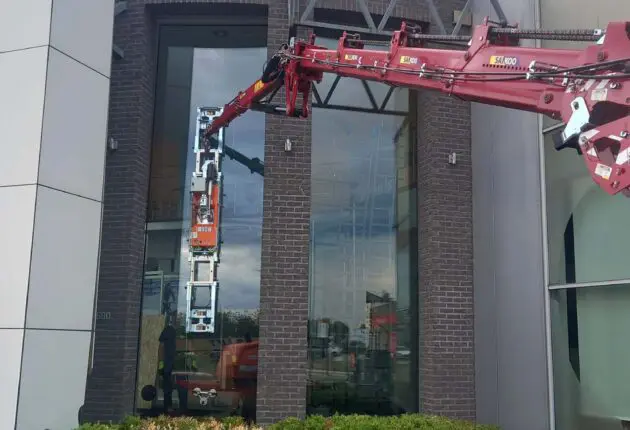 Aby można było umieszczać szkło w sposób całkowicie kontrolowany, opracowaliśmy ramię podnoszące z silnikowym mechanizmem przechylającym wyposażonym w zdalne sterowanie radiowe. Szyba nie musi być już przechylana manualnie, gdyż można to zrobić poprzez naciśnięcie przycisku. Dzięki temu szyba może być umieszczona z dokładnością co do milimetra. Zapytaj o możliwości.
